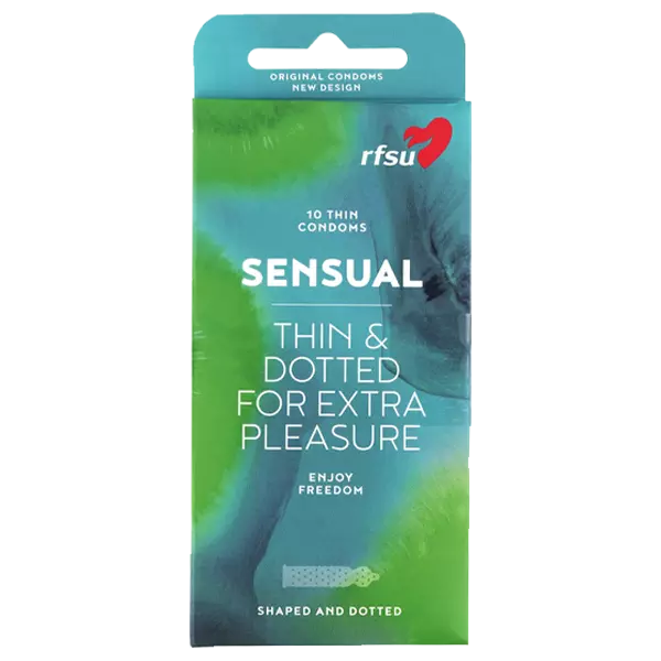 | Konsumentens bruksanvisning | Så här använder du RFSU-kondomer. Läs även gärna den tryckta informationen som finns tryckt på förpackningens insida eller bilagd i förpackningen. 1. Hantera kondomen försiktigt.Öppna förpackningen som teckningen visar. Undvik skarpa föremål, t ex vassa naglar, smycken mm, vid hantering och öppning. Rulla först upp kondomen en bit så att det syns tydligt åt vilket håll den skall rullas på. 2. Kläm behållaren mellan tumme och pekfinger för att få bort luft. Innan intim kontakt sker mellan penis och din partner, rulla på kondomen på den erigerade penisen för att förhindra graviditet eller spridning av sexuellt överförbara infektioner. 3. Stanna upp och kontrollera att kondomen sitter på plats. 4. Direkt efter utlösningen dras penis ut och kondomen hålles noga på plats vid penisroten så att ingen sperma rinner ut. 5. Konsultera läkare om du tar något läkemedel (t.ex. salva) som vid eventuell kontakt med kondomen kan innebära någon risk för nedsatt funktion. 6. Om kondomen spricker vid användning, kontakta sjukvården inom 72h. Kondom är det enda preventivmedel som skyddar mot både graviditet och sexuellt överförbara sjukdomar. När du använder extra glidmedel ska det vara vatten- eller silikonbaserat, RFSU har ett brett sortiment att utgå ifrån. Använd inte oljebaserade varianter som t.ex. barnolja eller vaselin. Kondom används av sexuellt aktiva personer som ett preventivmedel och/eller vid förebyggande av sexuellt överförbara infektioner (STI) som HIV och andra vanliga sexuella sjukdomar. Kondomen ska inte användas om graviditet önskas eller om allergi förekommer mot latex, silikonolja eller någon av ingående smakämnen. Tillverkaren och den behöriga myndigheten skall informeras om alla allvarliga tillbud som inträffat med produkten. |